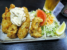 ゆっくりとカキフライをつまみ、ビールをチビリ。