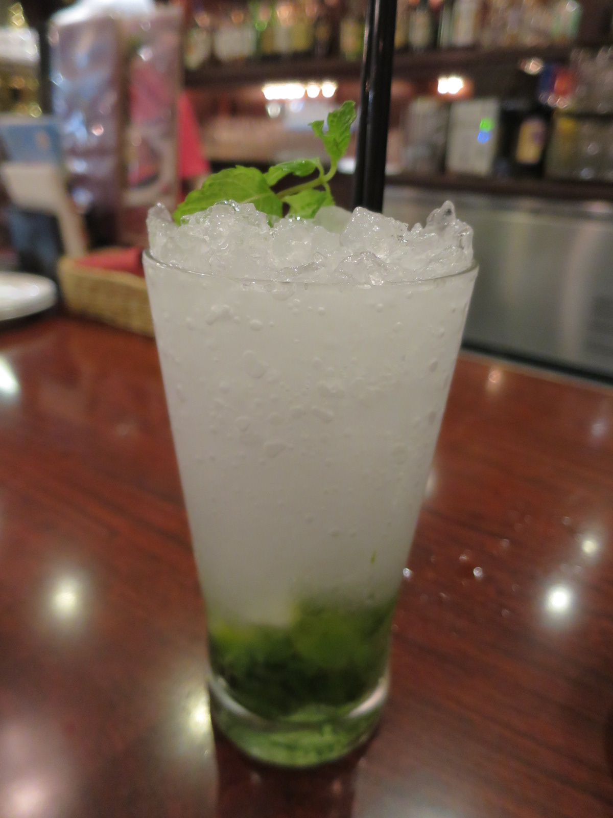 たっぷりのクラッシュアイスとライムの風味にミントの葉がアクセント。