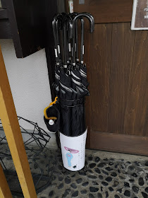 貸日傘もお店の前に置いてありました。